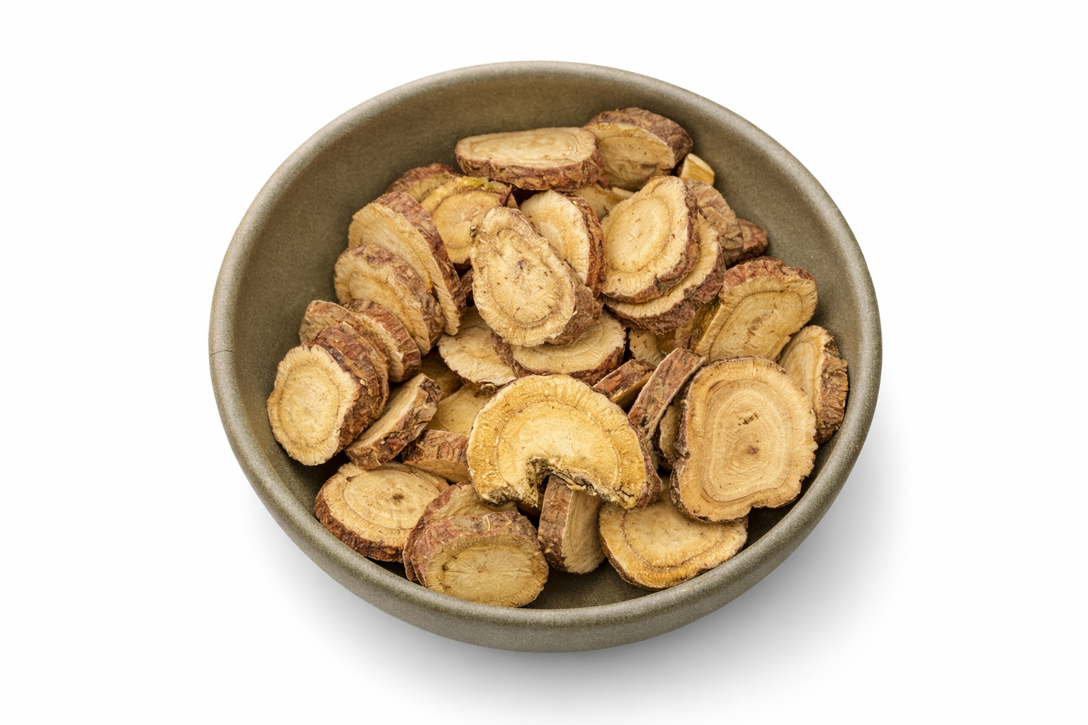 Gan Cao 甘草 Liquorice Root is a foundational herb in Traditional Chinese Medicine (TCM). These brown slices are prized for their mainly sweet, with earthy and woody undertones, and sometimes a light, cooling sensation.